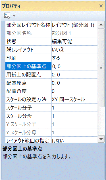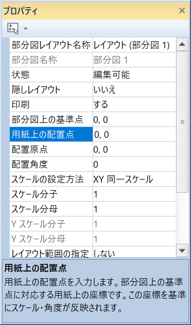 部分図レイアウトの配置原点、配置角度、配置スケールを変更する