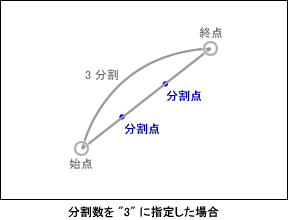 - コマンドウィンドウの [分割数] ボックスに、2点間の分割数を入力する