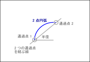 2 つの通過点を指定し、その通過点を通る円弧を作成します。