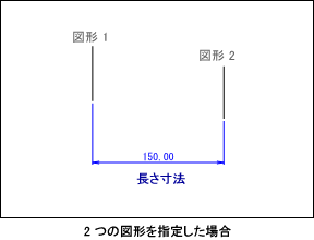 コマンドウィンドウのパラメータを [図形 1] ボックスに切り替え、長さ寸法を作成する 2 つの図形をクリックします。