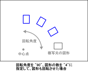 指定した回転角度の範囲内に、指定した間隔角度で図形を複写します。