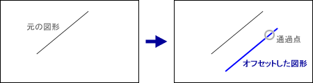 指定した通過点を通る平行な位置に、図形がオフセットされます。