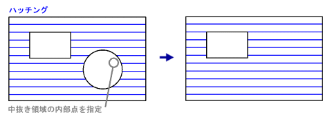 クリックした点を囲む中抜き領域がハッチング図形から削除されます。