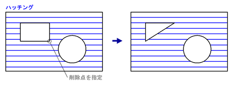 - [編集] メニューの [ハッチング編集] をポイントし、[ハッチングの点列削除] をクリックする